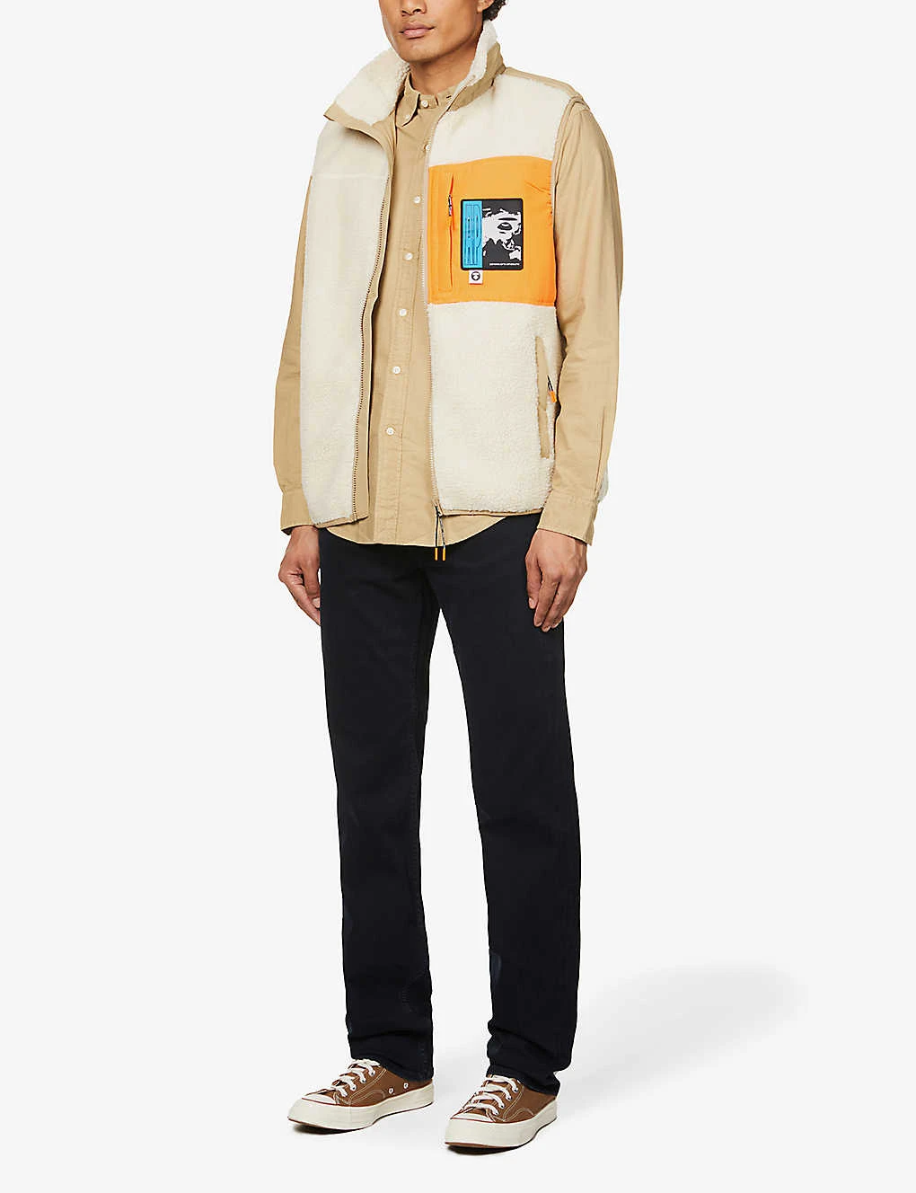 - Regular fit, mid rise, straight leg, belt loops, five pockets, brand patch at back waistband, V-shaped yoke at back