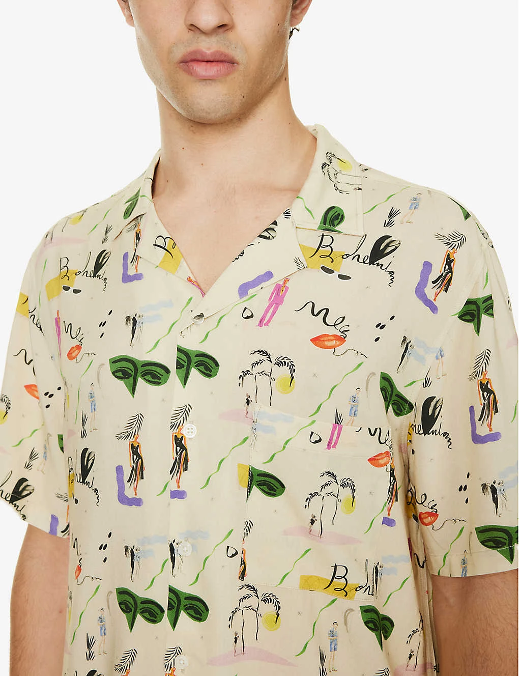 - Relaxed fit, short sleeve, patch pocket at chest, all-over print