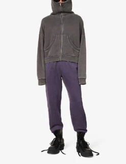 - Relaxed fit, hood, long sleeves, embroidered brand patch at sleeve, brand print at front and back, kangaroo pocket at front, ribbed trims