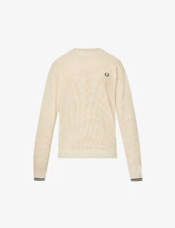 Fred Perry Waffle-knit Brand-embroidered Regular-fit Cotton-knit Jumper
