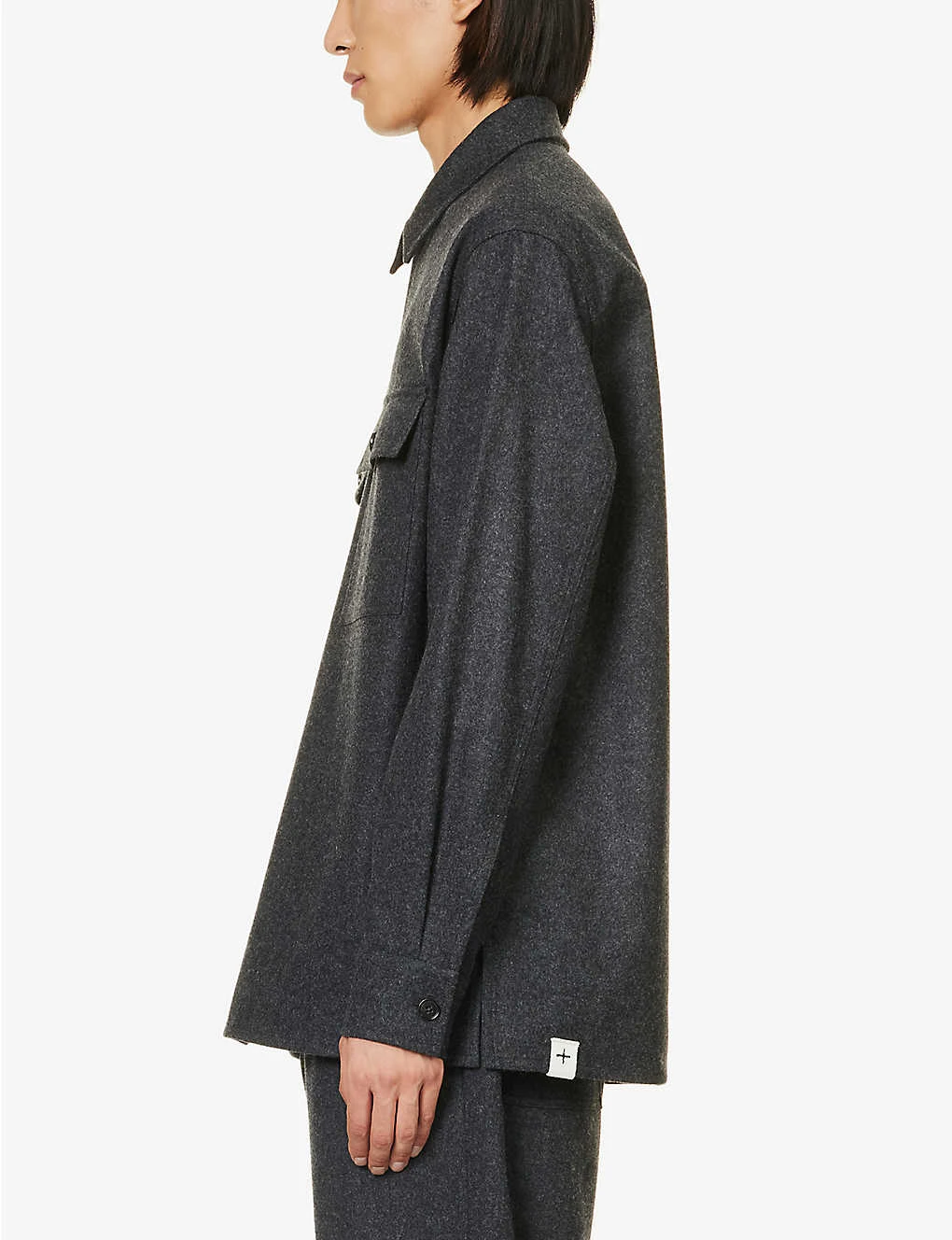 - Relaxed fit, long sleeves, pleated cuffs, two buttoned flap pockets at chest, soft-brushed texture, split hem at sides, partially lined