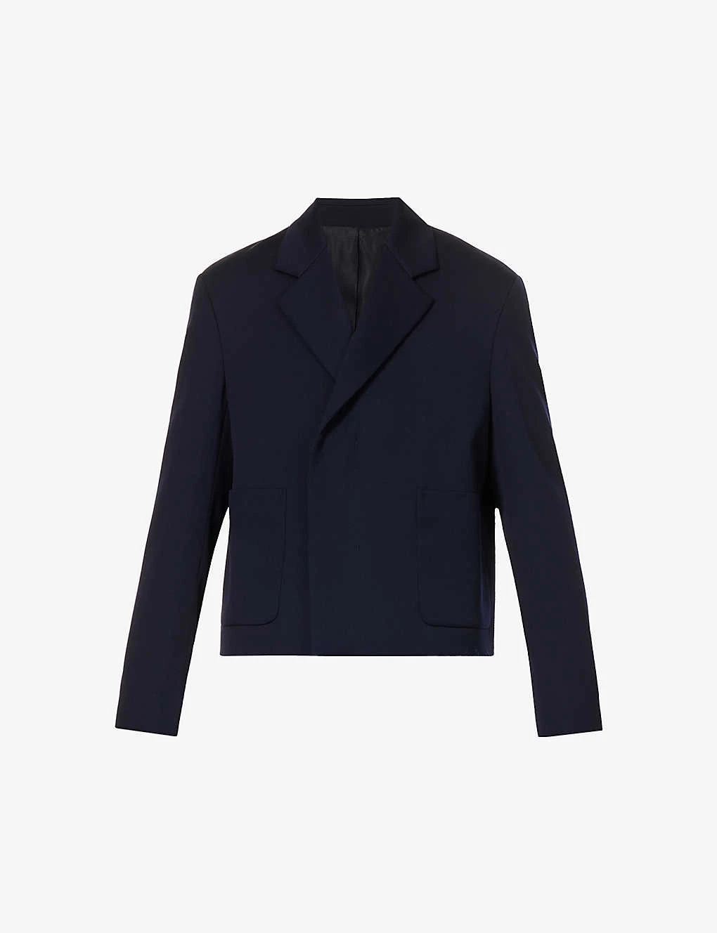 - Boxy fit, notched lapels, long sleeves, two patch pockets at front, lined