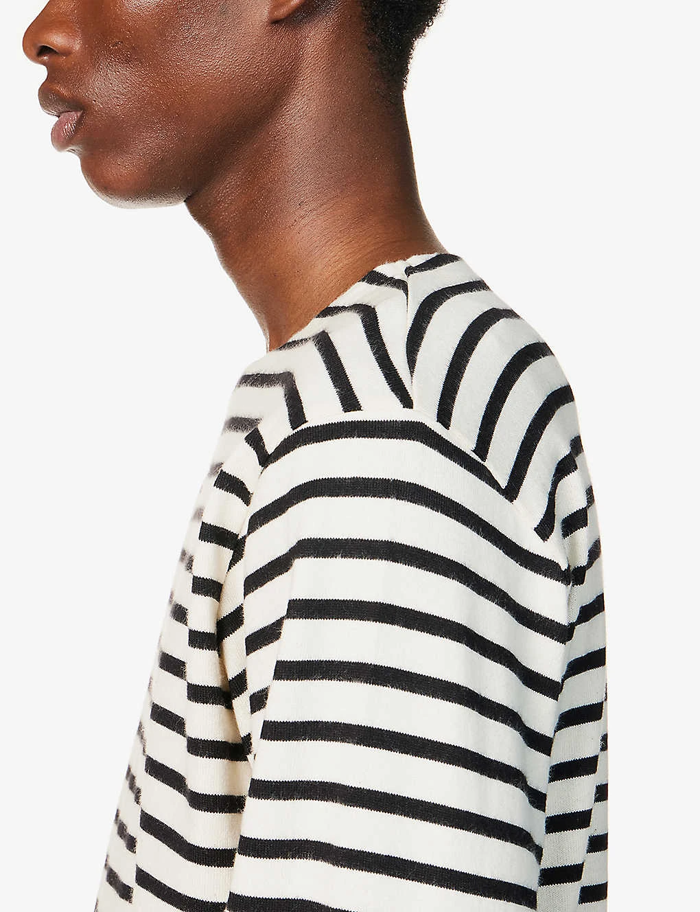 - Relaxed fit, crew neck, long sleeves, straight cuffs, all over striped print, knitted, straight hem
