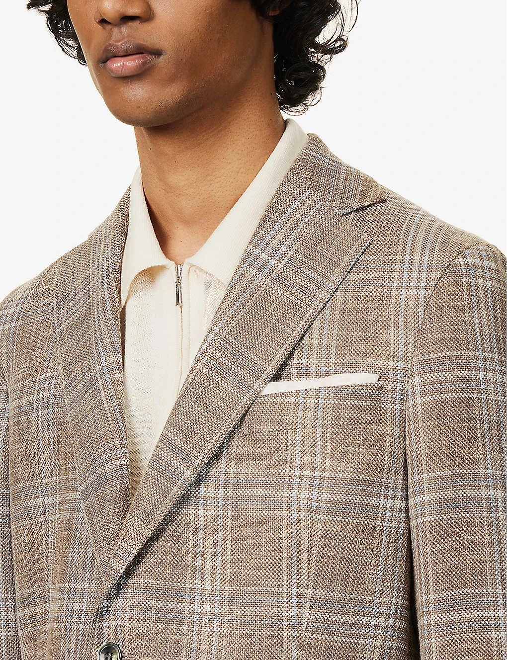 Oscar Jacobson Ferry Checked Single-breasted Cotton, Linen And Wool-blend Blazer