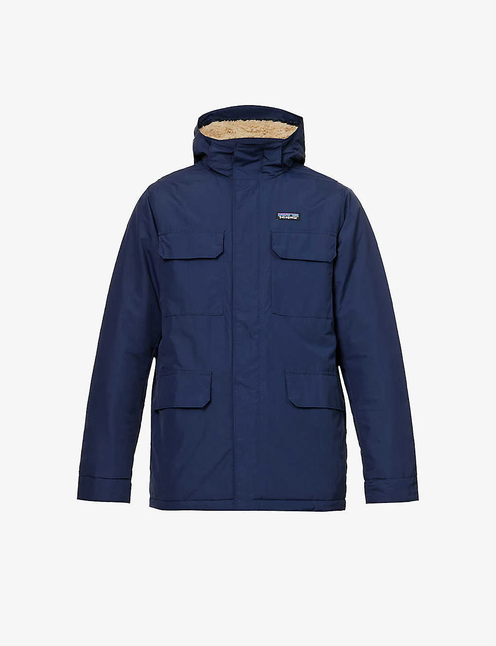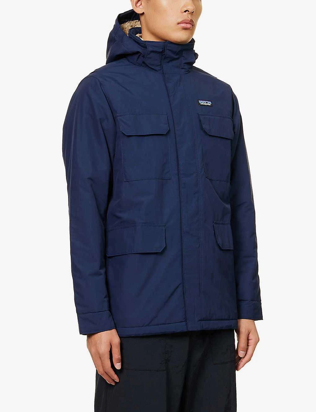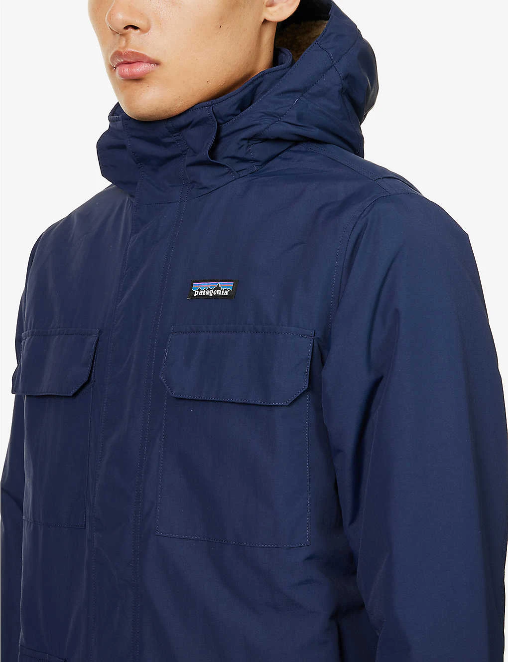 - Relaxed fit, funnel neck, detachable drawstring hood, long sleeves, adjustable cuffs, branded patch at chest, two patch pockets at chest, two flap pockets at front, full fleece lining