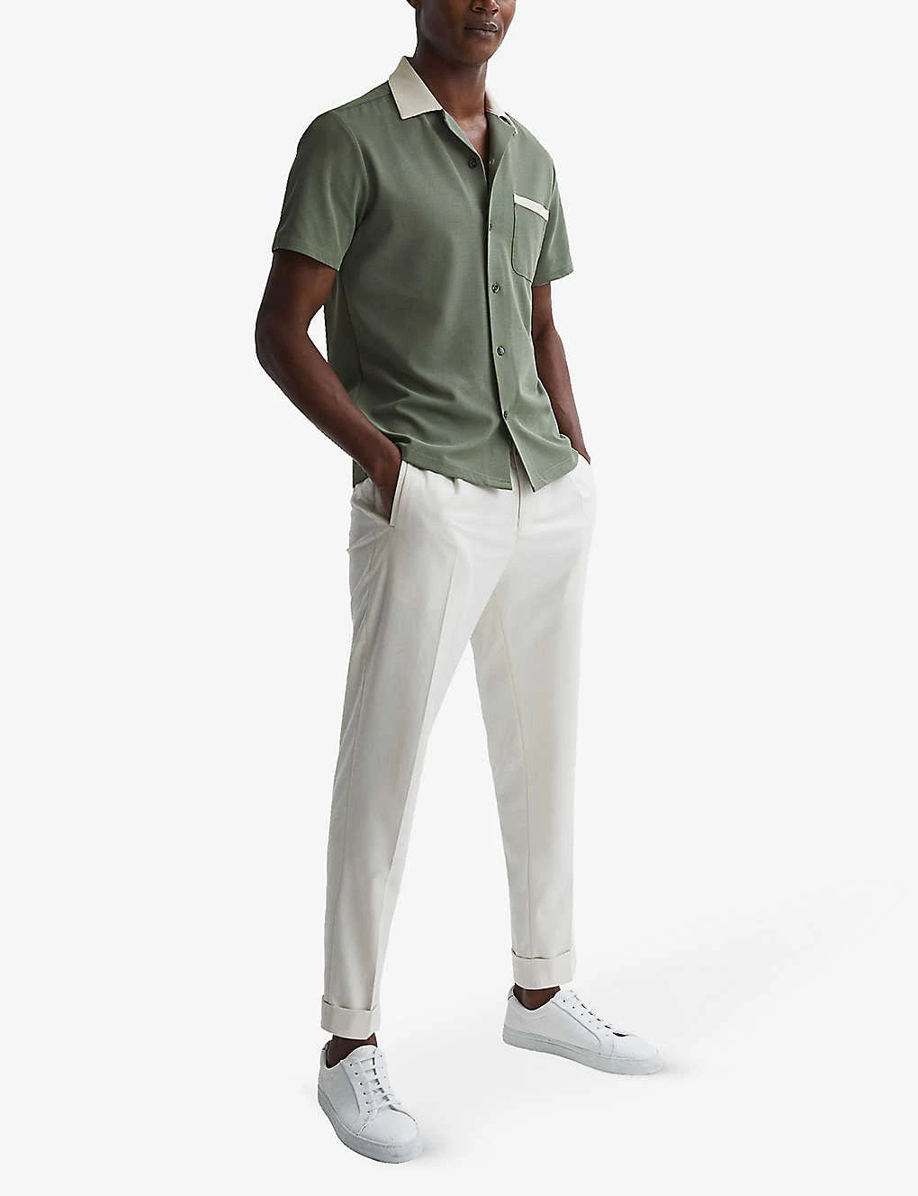 - Regular fit, Cuban collar, short sleeves, contrast panels