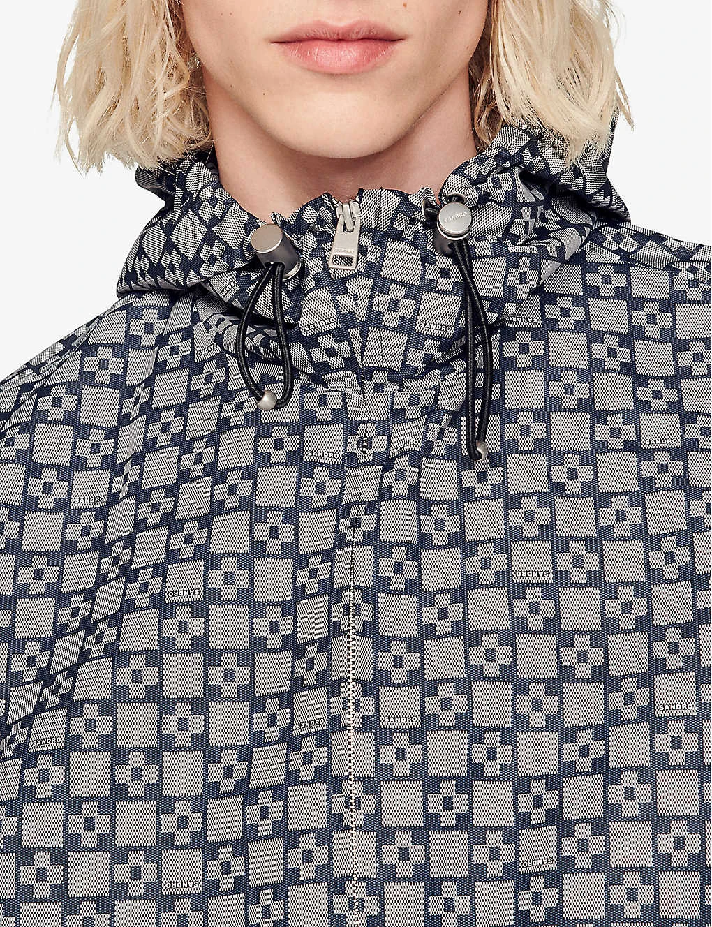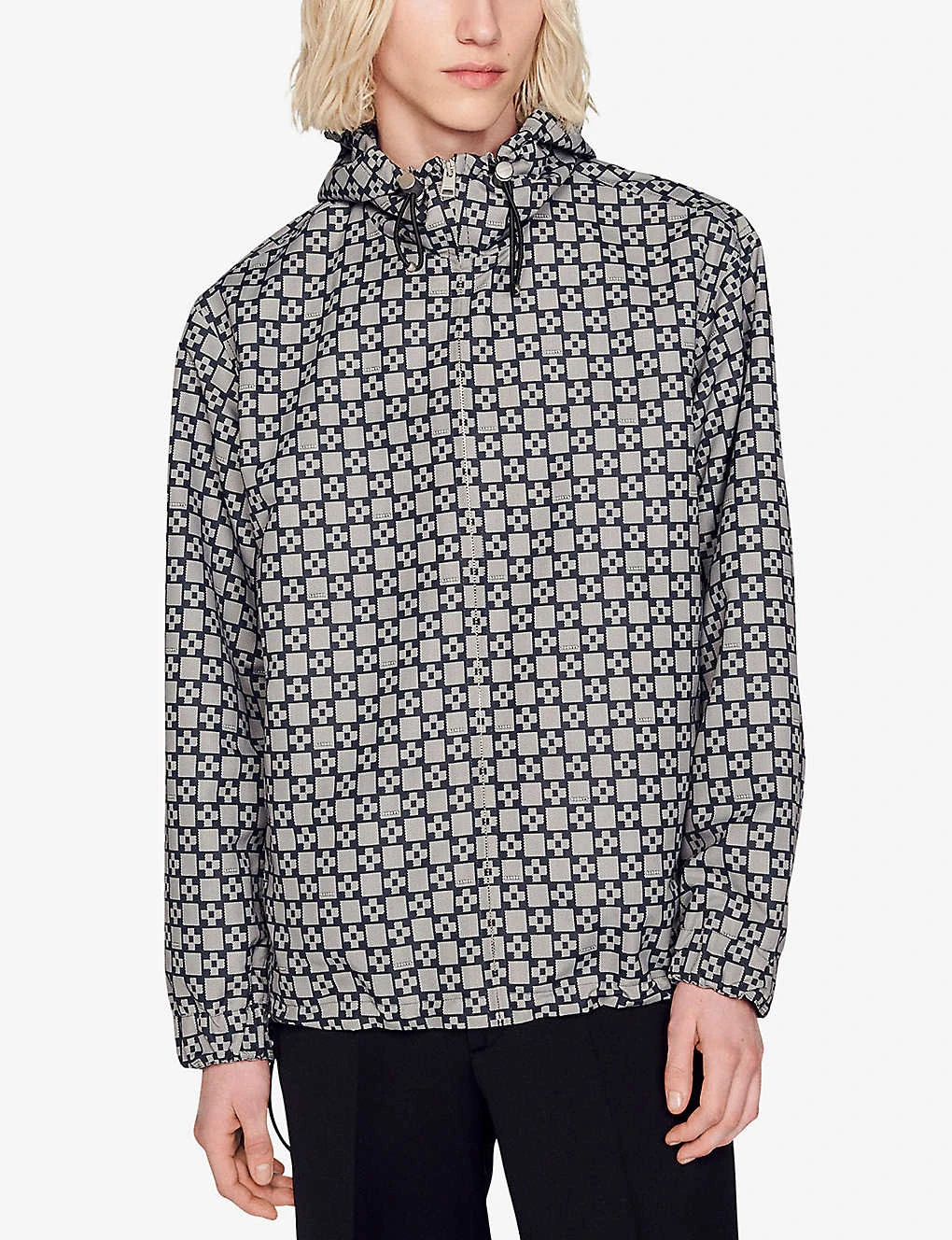 - Relaxed fit, long sleeves, high neck, drawstring hood, all-over checked print, elasticated cuffs, drawstring hem, two side slip pockets