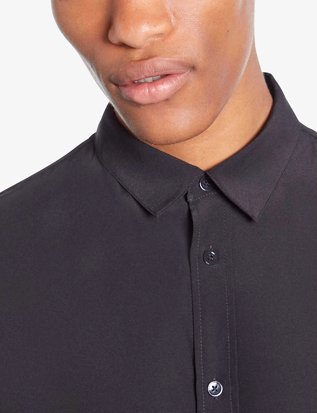- Comfort fit, long sleeves, buttoned cuffs, pearlescent buttons, curved hem